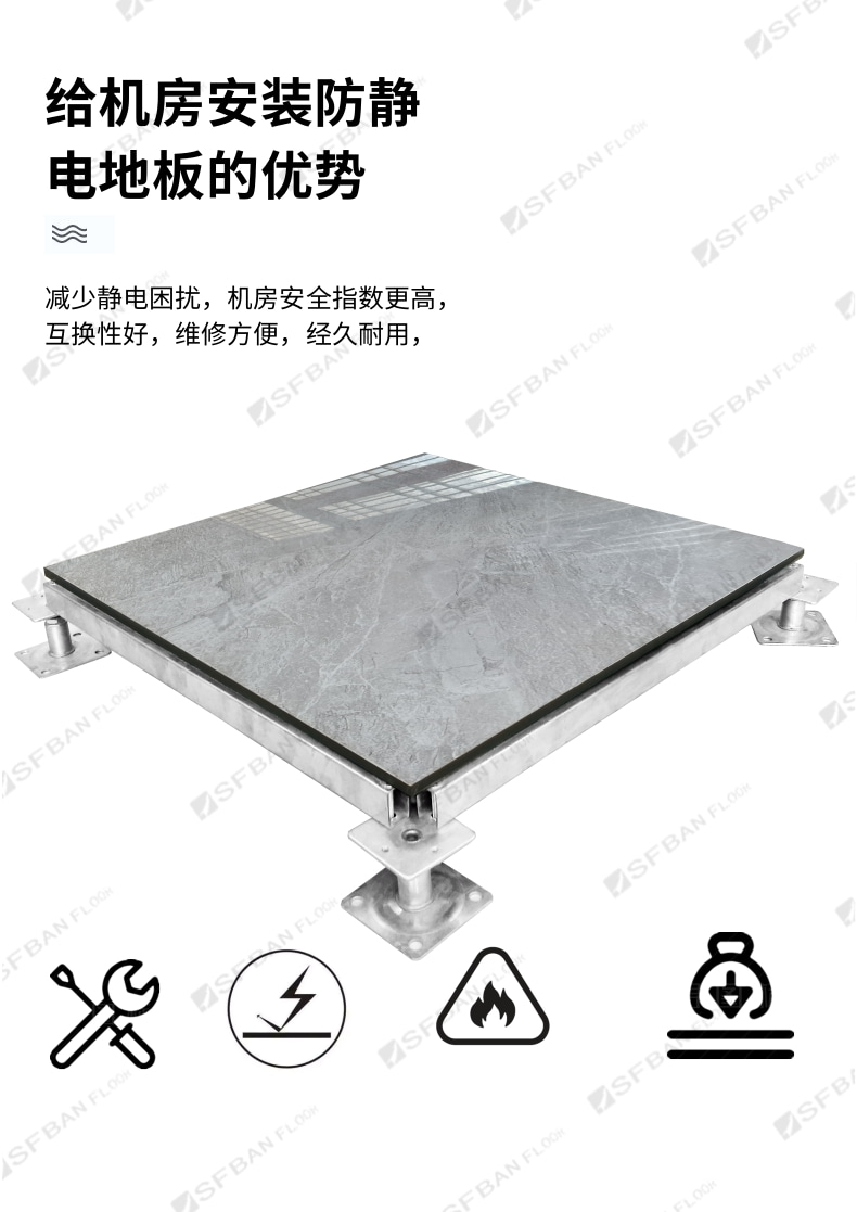 產(chǎn)品型號(hào):FS1000 產(chǎn)品規(guī)格:600mm*600mm*38.5mm 產(chǎn)品面層:陶瓷面防火板 產(chǎn)品載荷:1000kg一平方
