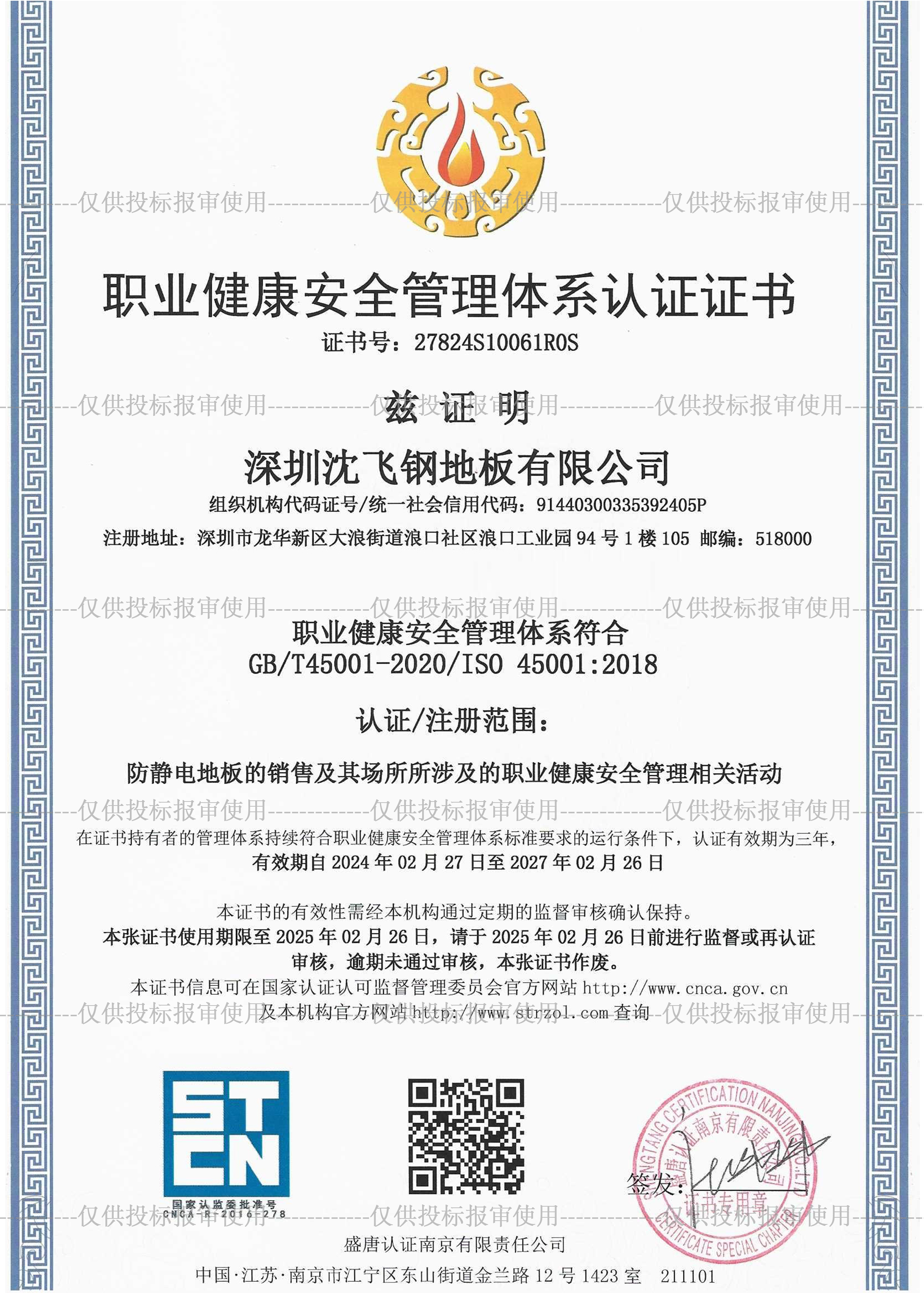 注:以上證書為深圳沈飛鋼地板有限公司所有,未經(jīng)允許不能復(fù)制修改作為其它使用,造成企業(yè)損失本公司有權(quán)追究相關(guān)法律責(zé)任